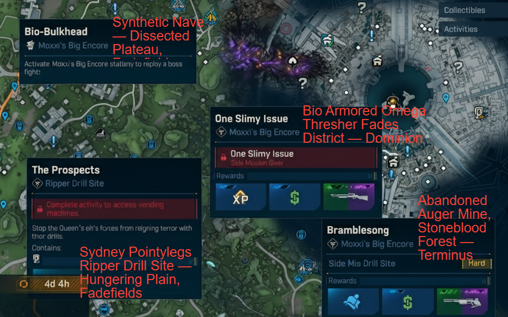 | Sydney Pointylegs (No Points Awarded) | Ripper Drill Site — Hungering Plain, Fadefields | Fast melee boss; uses ambush tactics. |