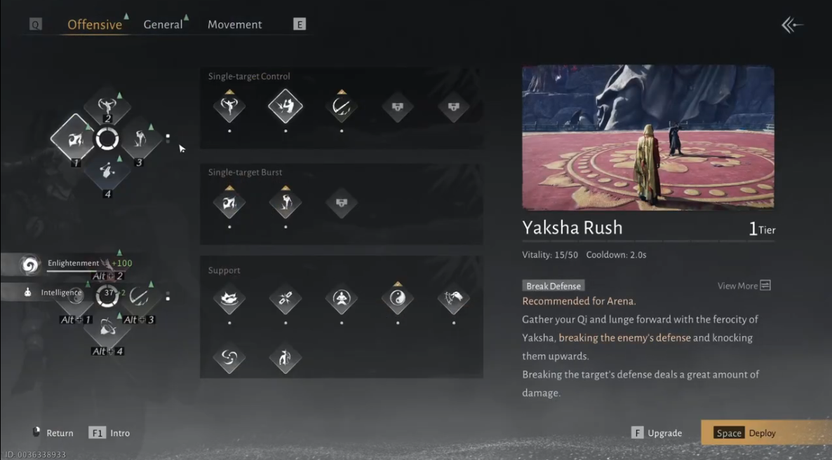 Yaksha Rush excels as a burst opener thanks to its guaranteed defense break, allowing you to disrupt armored foes instantly and set up high-damage combos. Activate the skill to dash through your target and crack their guard, then follow up with aerial or heavy Qi attacks while the enemy is lifted for maximum impact. Its short cooldown makes it easy to weave into nearly every rotation, keeping your pressure consistent. In PvP, the Tier 3 silence effect becomes especially valuable, preventing casters from countering after you shatter their defense.