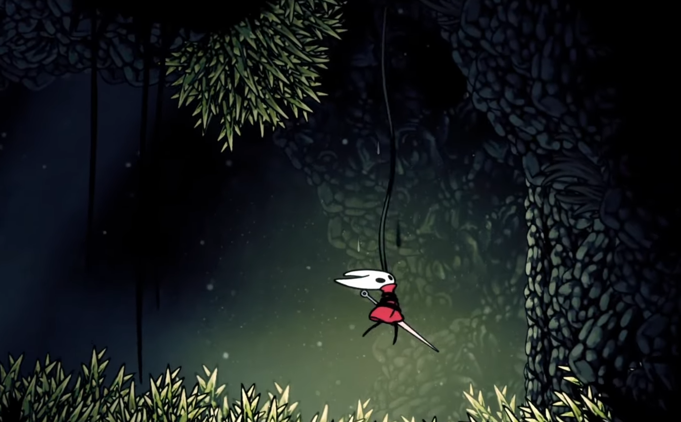 Squeeze through to the elevated ledge, then cling to the right wall using Cling Grip. Shimmy up, parrying any patrolling silkstruck mid-climb to avoid falls.