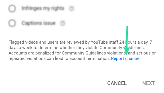 To report an entire channel to YouTube, click the ‘Report channel’ option at the bottom of the popup.
