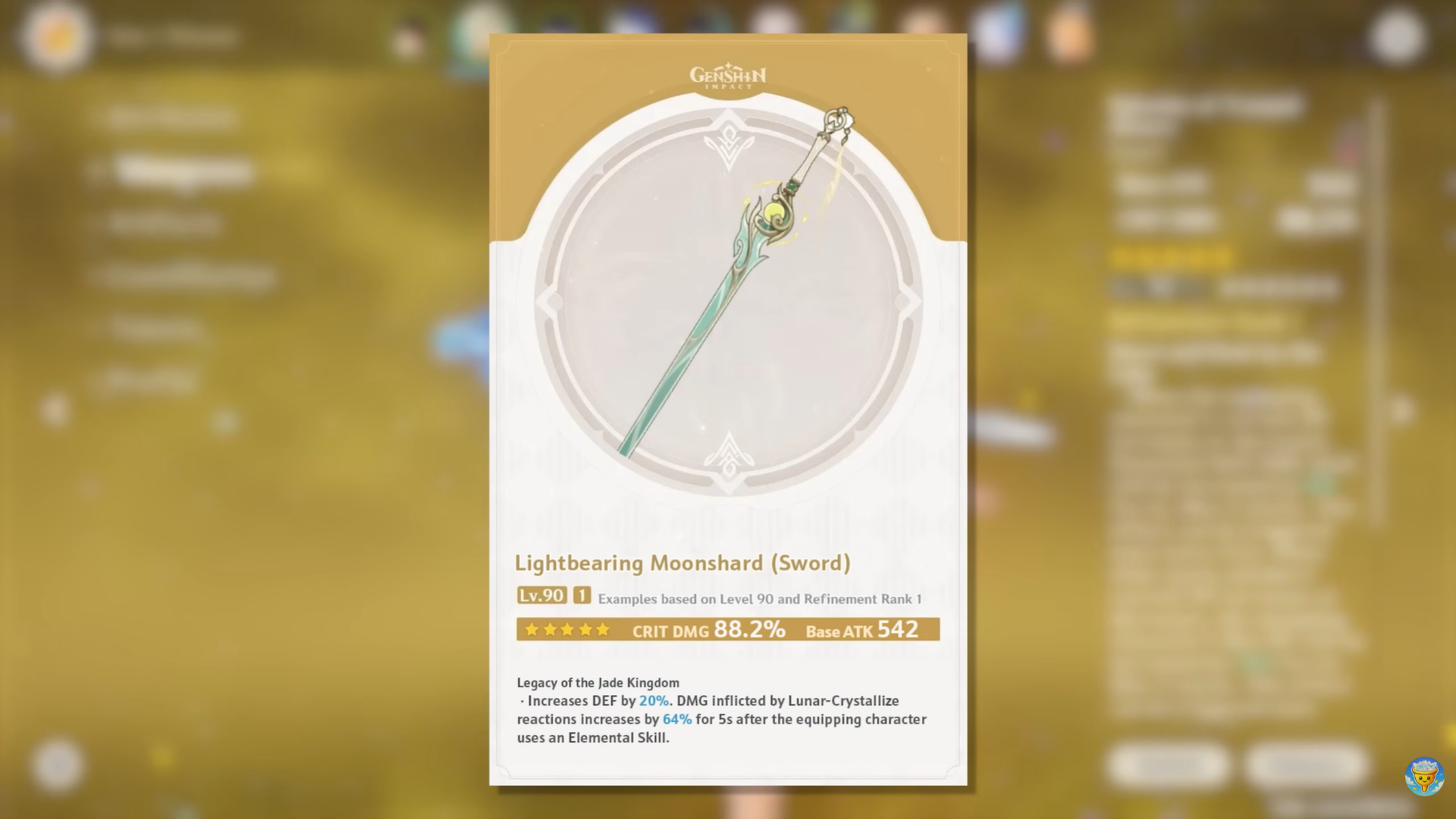 - Her signature sword increases DEF and Lunar-Crystallize reaction damage on Elemental Skill casts — a top-tier choice.