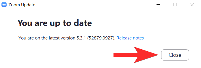 A new window will open to tell you whether you are using the latest updated version of Zoom. If you are, then you will see this notification. In which case, click on Close.