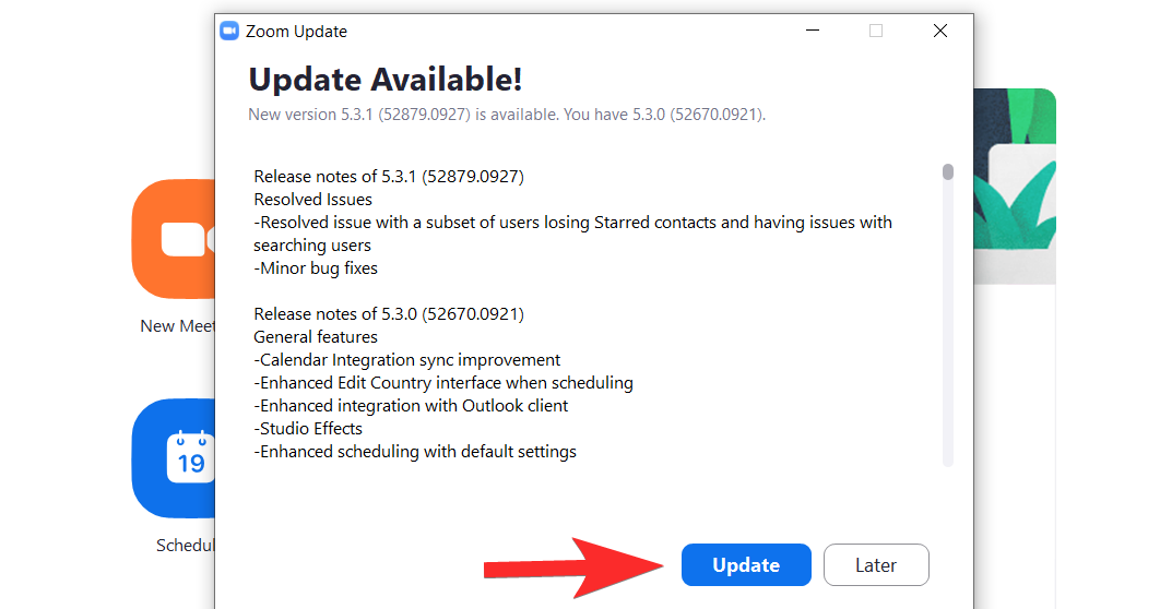 If you don’t have the latest updated version, Zoom will inform you regarding the same. When you see this window, click on Update.