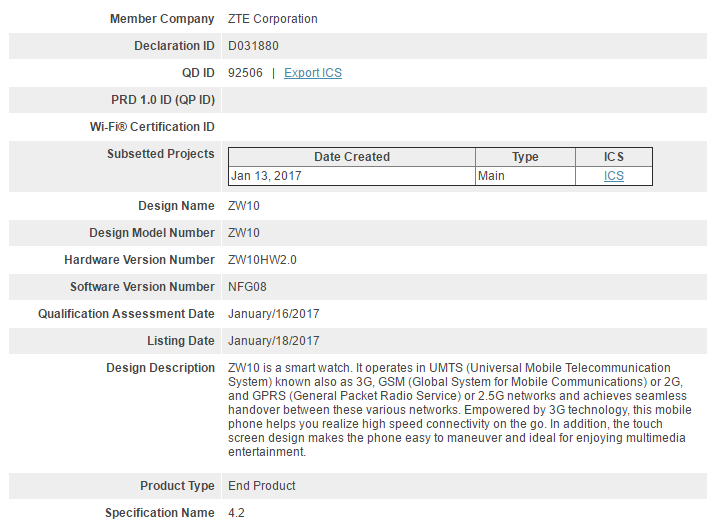 The Bluetooth SIG listing, however, features UMTS (3G) connectivity which doesn’t lines up with the previously rumored LTE variant. But it could that ZTE is planning different variants of the watch for different regions, or it’s just going to come with 3G connectivity, not LTE.